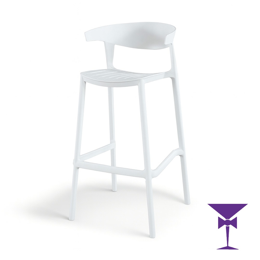 Our modern, minimalist bar stool designed to elevate any event. Its curved ergonomic backrest and smooth moulded seat offer a comfortable and stylish seating option. Available in classic black or crisp white to suit a wide range of interiors.
