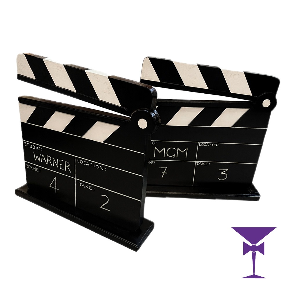 Make a statement at your next event with our oversized clapperboard props, available in two iconic designs: Warner or MGM text. Perfect for film-themed parties, premieres, photo backdrops, or stage décor, these eye-catching props bring a touch of Hollywood to any setting.