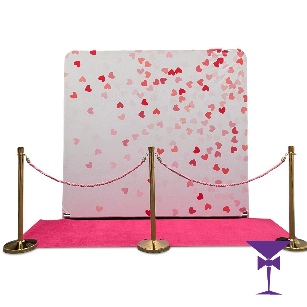 Bring a touch of Love to your celebration with our Scattered Hearts Backdrop. This freestanding backdrop features a soft white background sprinkled with hearts in shades of red, pink, and peach, perfect for romantic occasions & party styling.