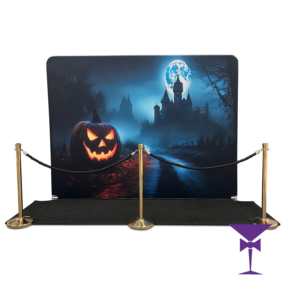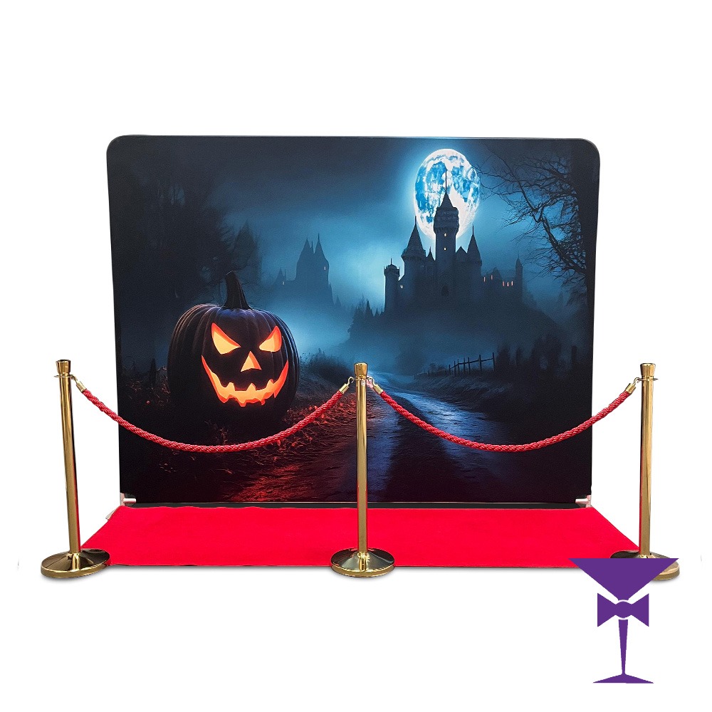 This Halloween Spooky Castle Backdrop Package is a high-impact prop, nearly 3 metres wide. This dramatic scene features a glowing pumpkin, misty moonlight, and a haunted castle silhouette, perfect for creating a bold photo opportunity or themed entrance.
