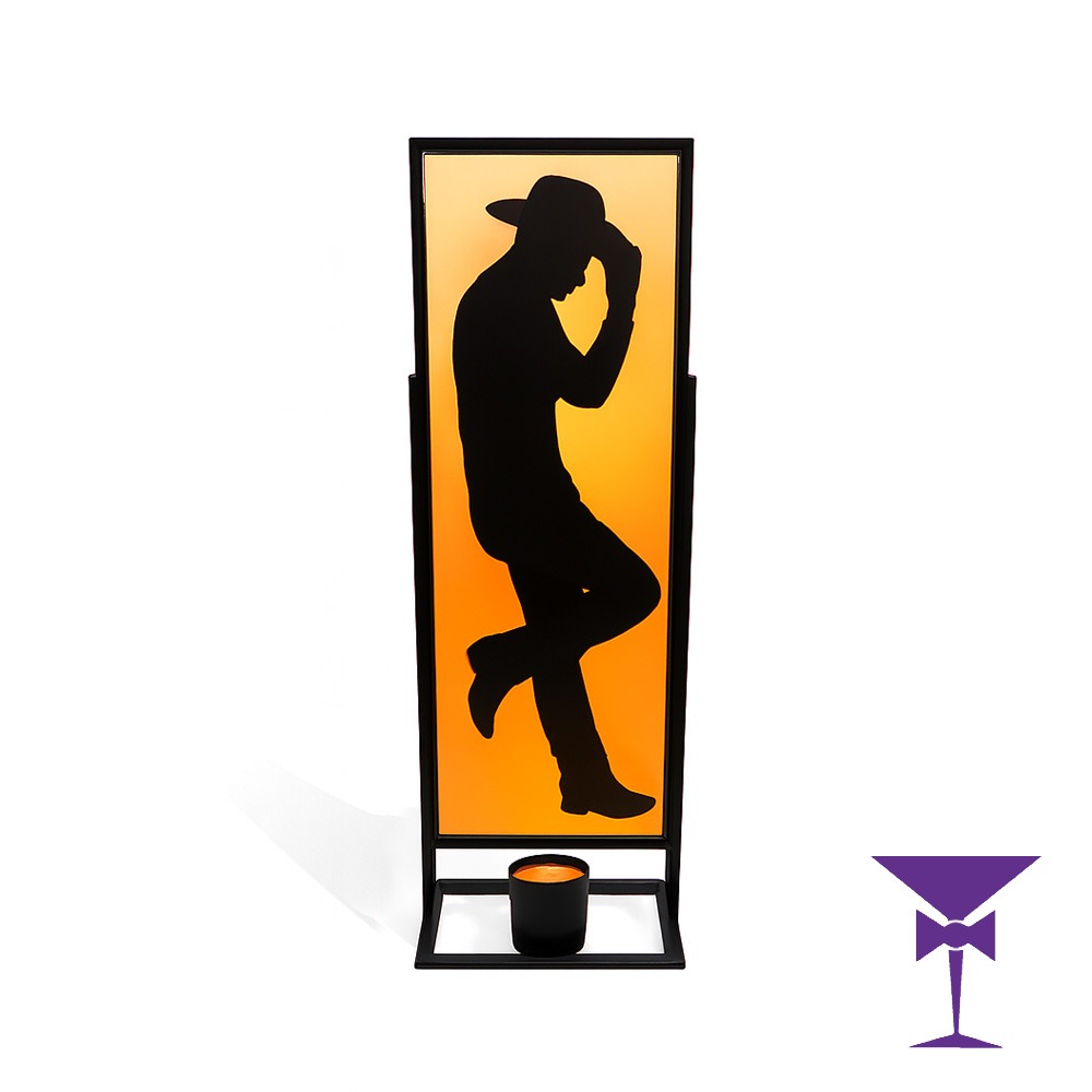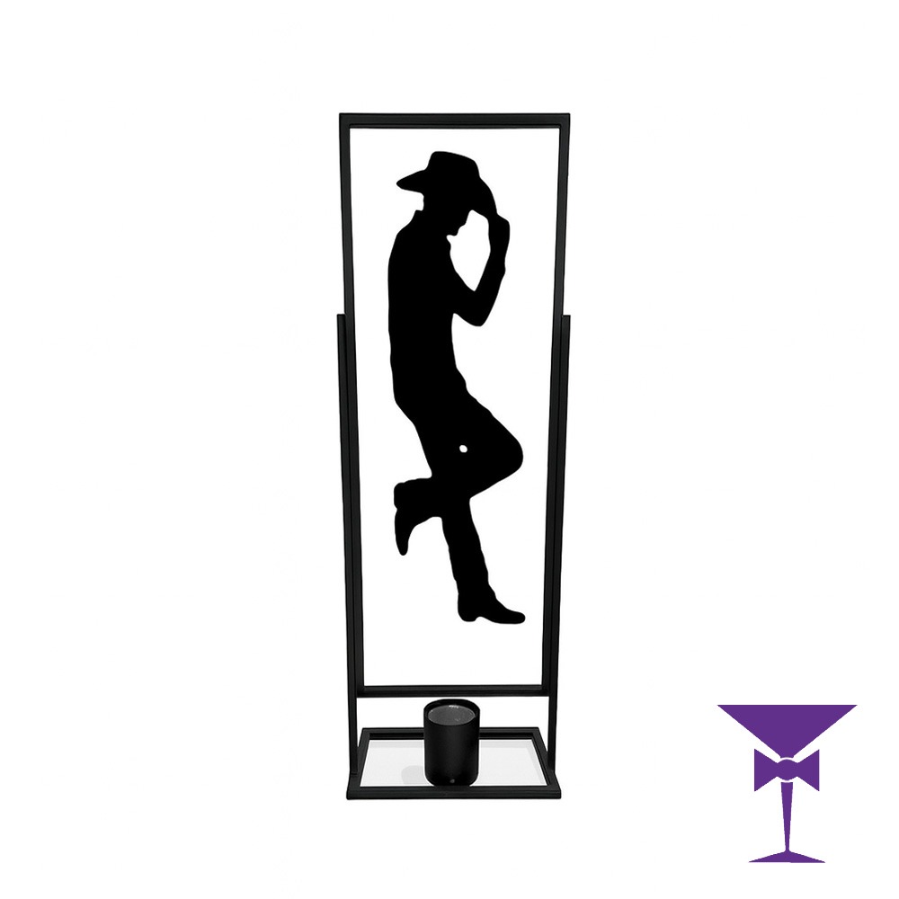 Bring Wild Western energy to your event with our illuminated cowboy silhouette board hire. This prop features a bold black metal frame which holds a classic cowboy figure.