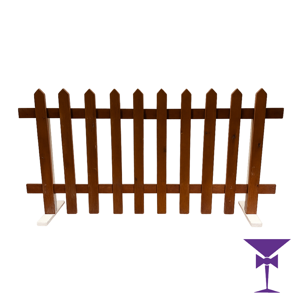 Enhance your next event with our freestanding brown wooden picket fence hire, perfect for weddings, festive markets, festivals, displays, and more.