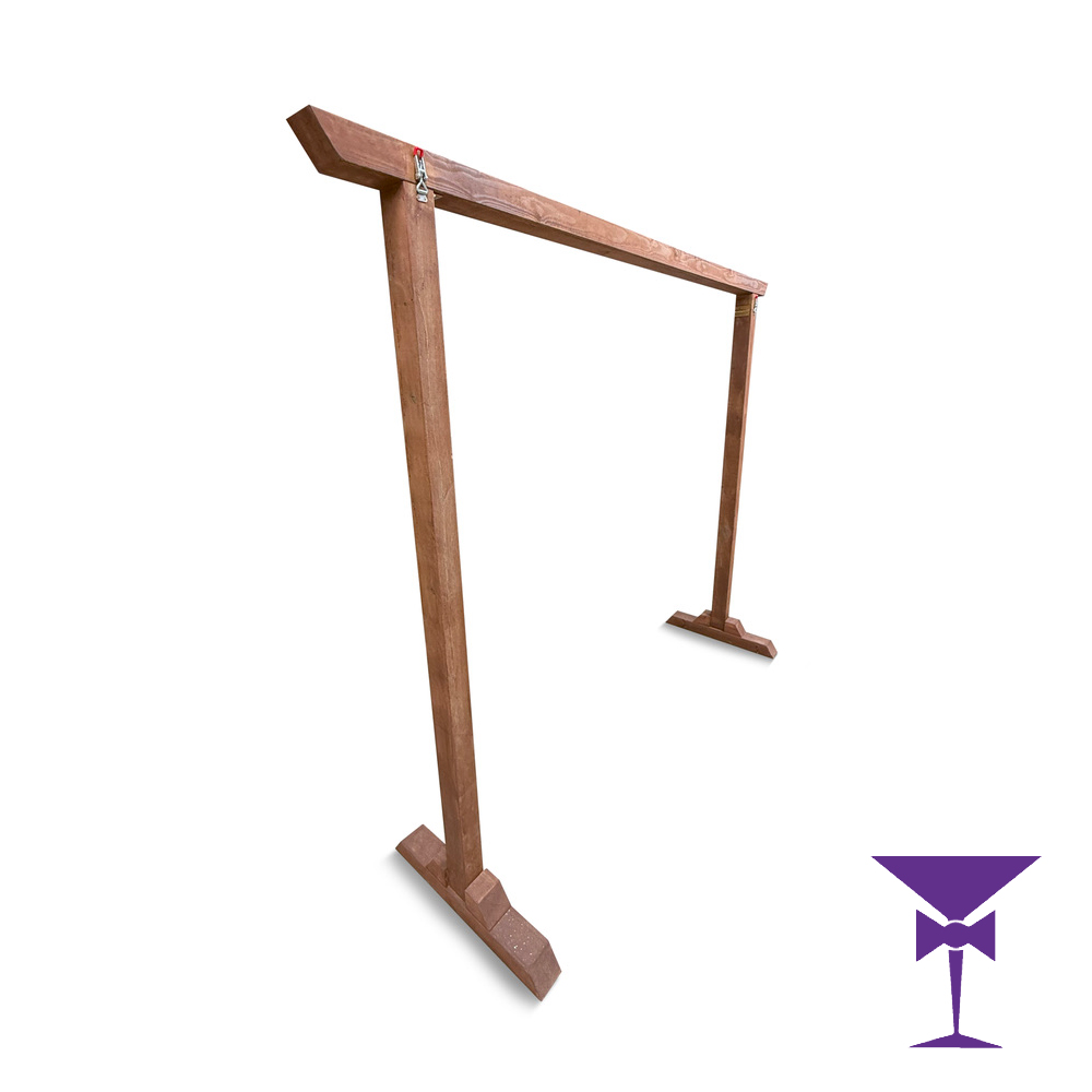 Create a stunning focal point for your celebration with our elegant Wood Arch, available for hire from Daniel Lay Event Services. Crafted from sturdy timber with a natural wood-stained finish, this freestanding frame provides a versatile base for floral arrangements, drapery, signage, or themed styling.